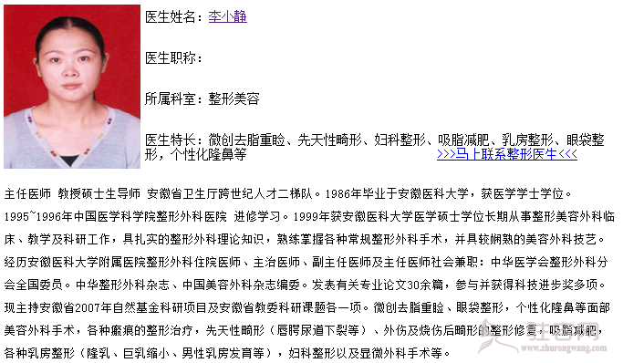 当前位置: 整形医院 > 安徽医科大学第一附属医院整 > 李小静